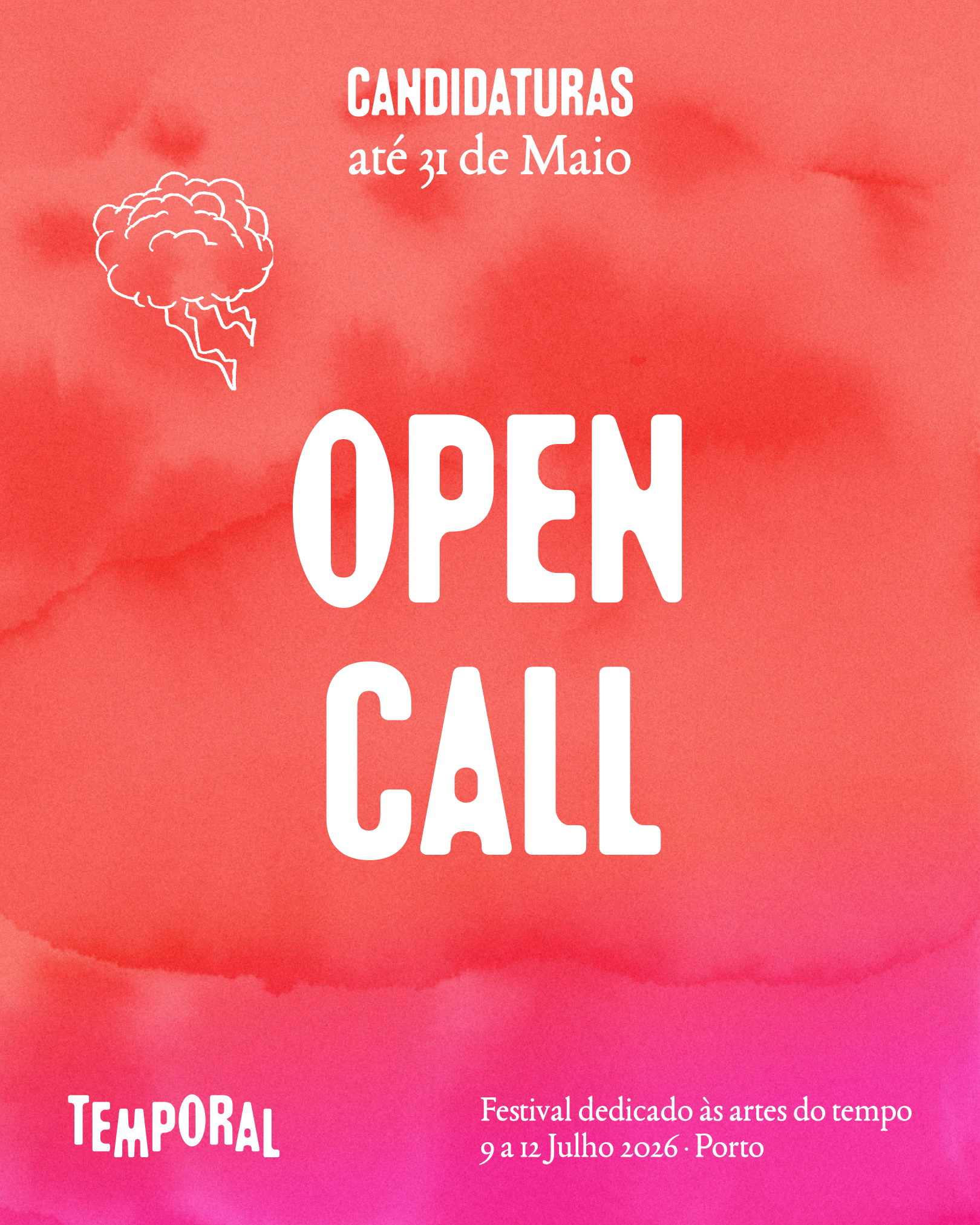 O TEMPORAL abre uma convocatória a nível nacional para a submissão de trabalhos artísticos que exploram a dimensão duracional, a integrar a programação da primeira edição do festival que terá lugar entre 09 e 12 de Julho de 2026, no Porto.